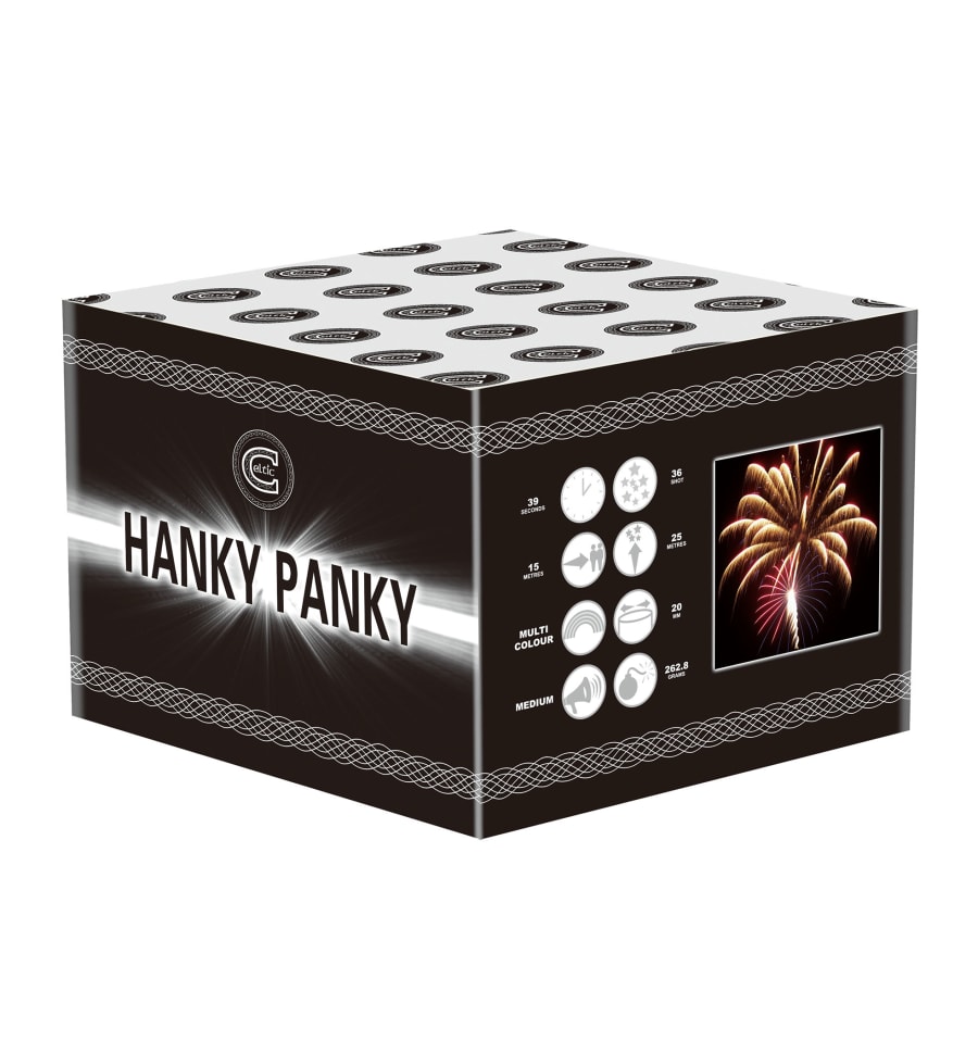 With its dazzling effects and vibrant colours, the Hanky Panky firework is the perfect addition to any special occasion. Whether you're celebrating a birthday, wedding, or any other event, this firework will light up the sky with elegance and charm.