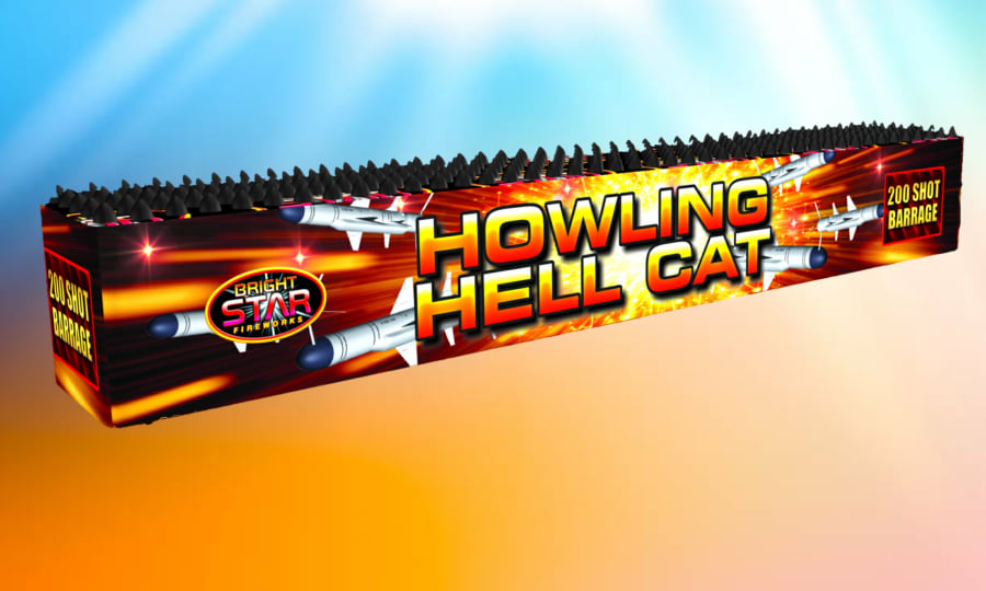 Get ready to light up the night sky with the Howling Hell Cat Barrage! This fiery spectacle features a dazzling array of 200 shots that will mesmerize your audience with its whistling and crackling effects. 🌟