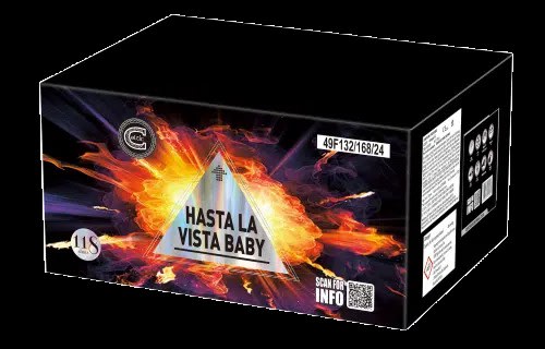 Get ready for a spectacular show with the Hasta La Vista Baby firework! This 119-shot single ignition barrage is a true crowd-pleaser that will light up the sky and dazzle your audience. 🎆