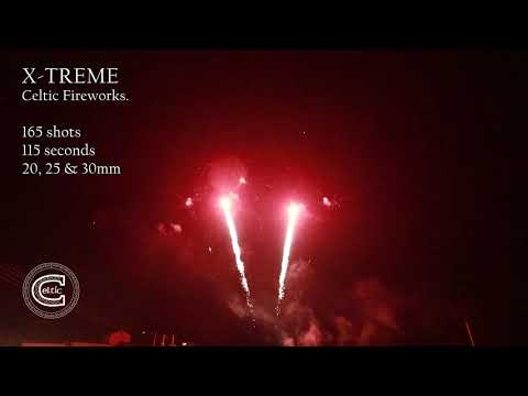 Get ready to be amazed by the X-treme, a complete 165 shot compound cake that brings the fireworks show right to your doorstep! Watch as the fans of gold kick off this exhilarating 2-minute spectacle, followed by a dazzling display of bright dahlias, shimmering strobes, and crackling combinations that will leave you in awe.