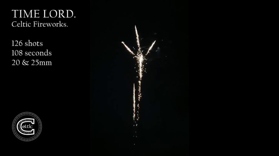 The Timelord is a real mix of effects, colours, and a great duration, ensuring that your fireworks show will be nothing short of spectacular. With 126 shots fired in a straight pattern, this 20mm calibre cake is designed to awe and inspire audiences of all ages.