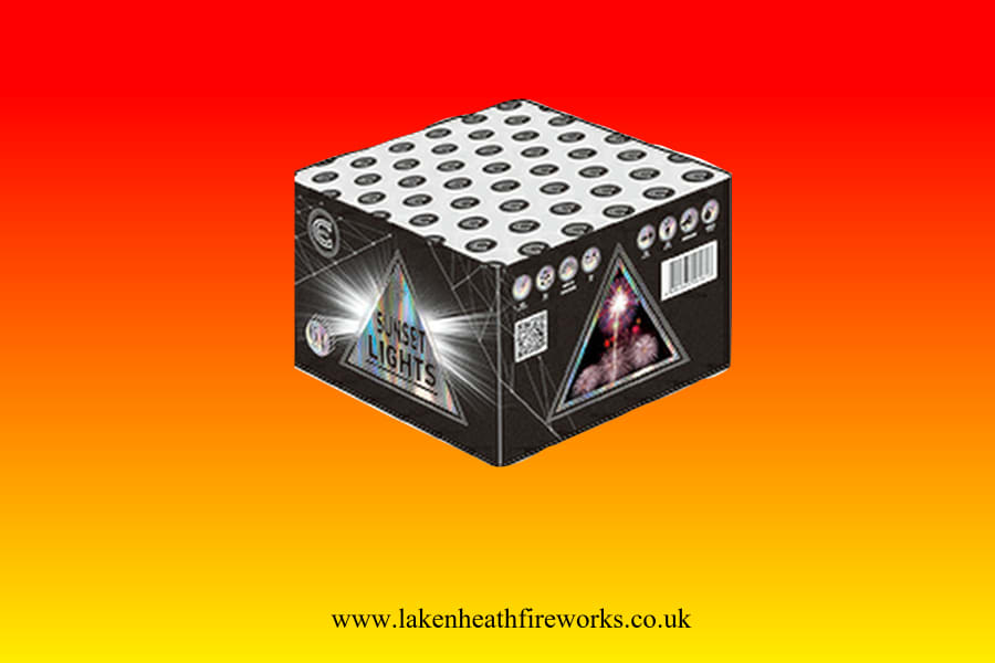 Looking for a stunning addition to your special event? Look no further than our mesmerizing Sunset Lights! With a total of 64 shots, these colourful strobes with wave bursts leading into beautiful golden bursts are sure to light up the sky and create a magical atmosphere for your celebration.