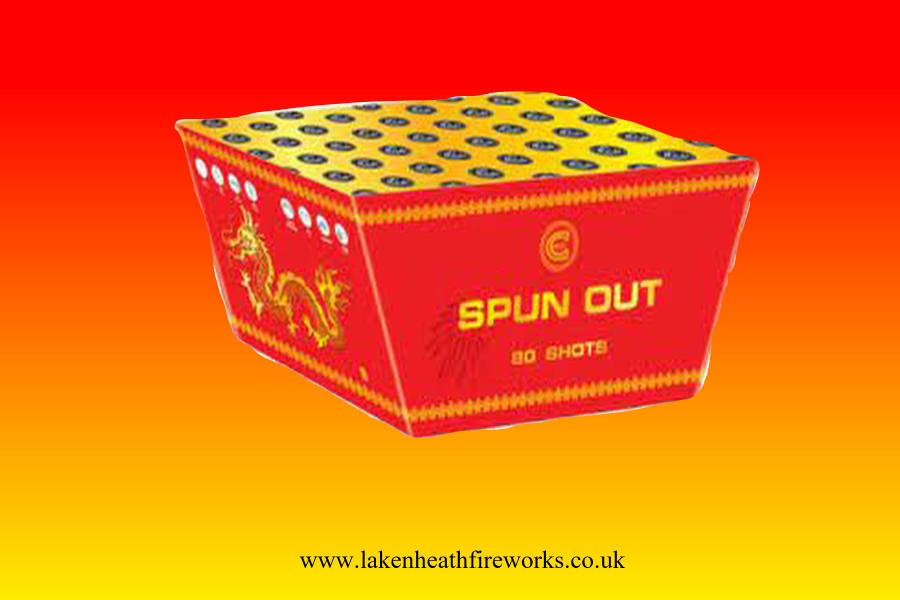 Get ready to ignite the sky with our Spun Out firework cake, a dazzling display of 80 shots that will leave you mesmerized. This stunning firework features a unique Z firing pattern, with red and green strobe mines that light up the darkness. Watch in awe as lifts of colored comet stars soar into the air, accompanied by silver whirling tails that create a mesmerizing visual spectacle.