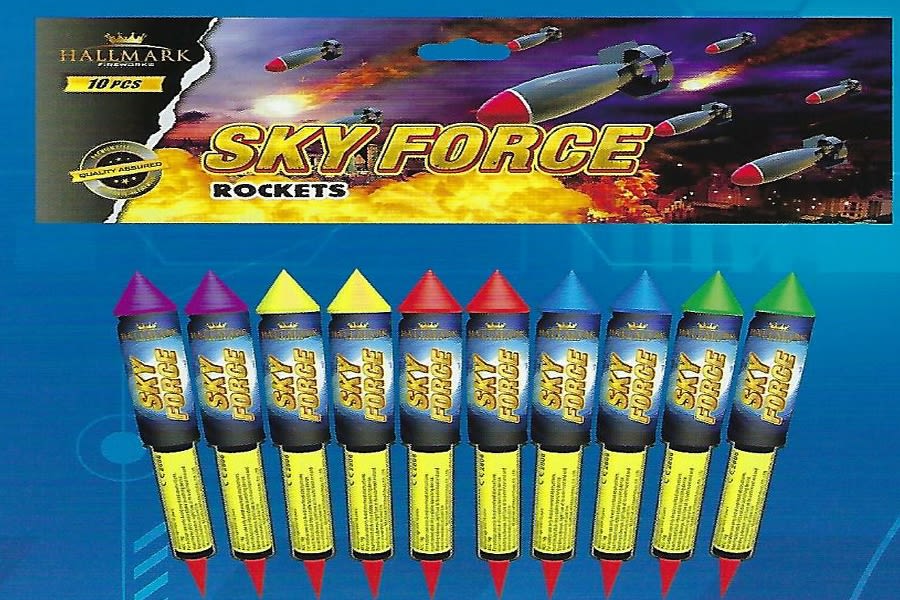 Bring the magic of fireworks to your next event with the Sky Force 10 Rockets from Hallmark. Order now and get ready to witness an unforgettable display of colour and light!