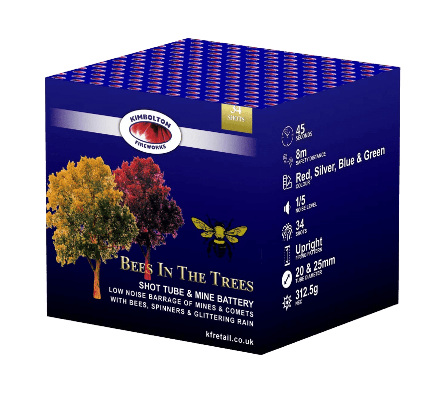 Transform your next celebration into a dazzling spectacle with our spectacular Bees in the Trees fireworks display. This low-noise barrage of mixed mines, comets, bees, spinners, and glittering rain offers a captivating show that will leave your guests in awe. With its 34 visually stunning shots, this fireworks package is perfect for any event, creating an enchanting atmosphere without the loud booms.
