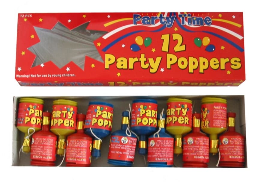 Each box of Party Poppers contains 12 individual poppers, ready to bring a burst of joy and excitement to your event. 🎇🌈